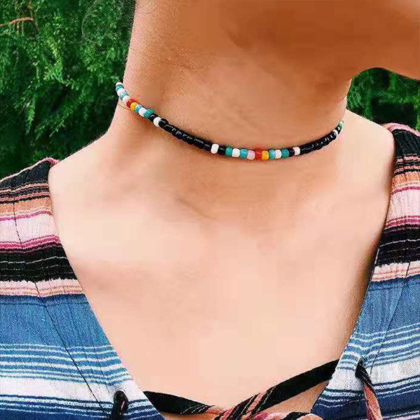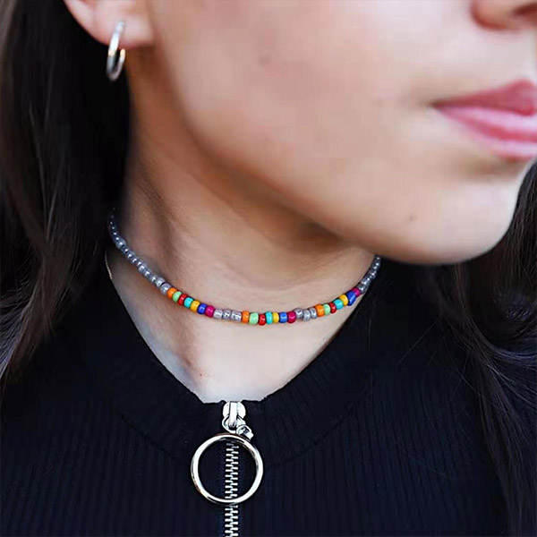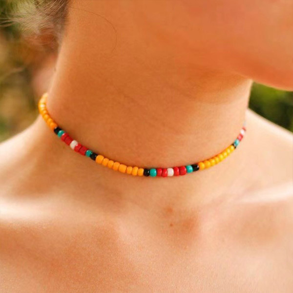 Your entire dress up can be more colorful when you wear this choker necklace. The colorful beaded details make it look so attractive. So why not embellish your charming neck with this little piece?
