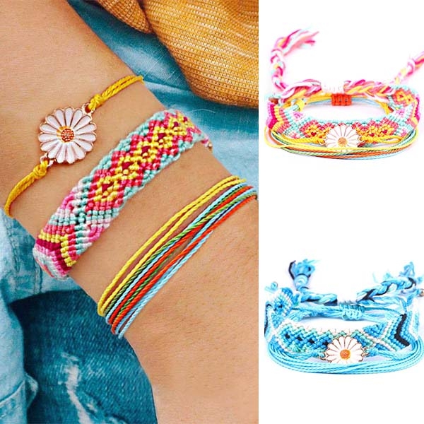 Add a dash of colorful vibes to your overall look with this bracelet set. The colorful braided