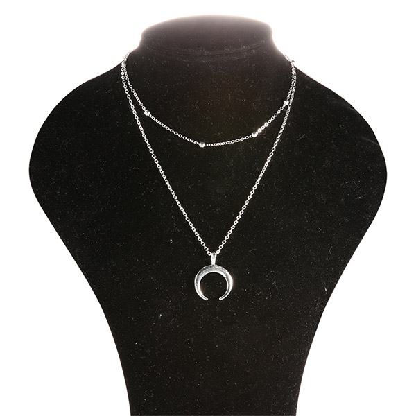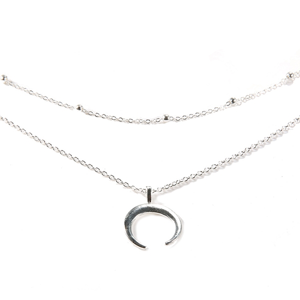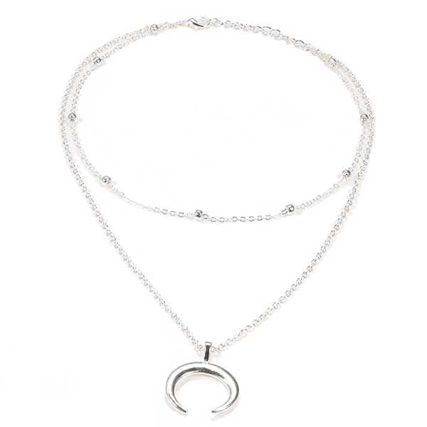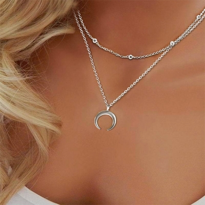 Bohemian Style Crescent Pendant Dual-layer Necklace