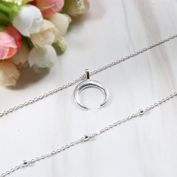 a crescent pendant,which is a good way to highlight your charming neck while it helps enhance your charm.
