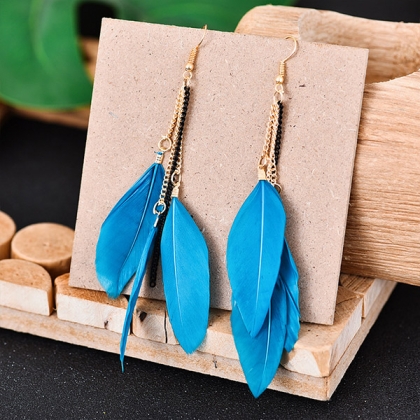 Hey,girls,you can trust in this pair of earrings to be the finishing touch of your overalls. It is decorated with the feather pendant,which makes it full of bohemian vibes. So why not finish a more charming daily look by adding this pair of earrings?