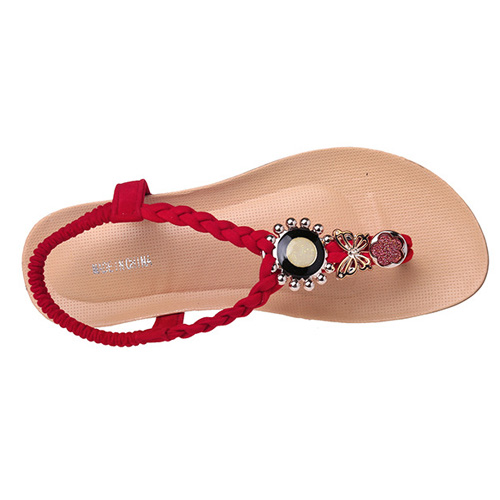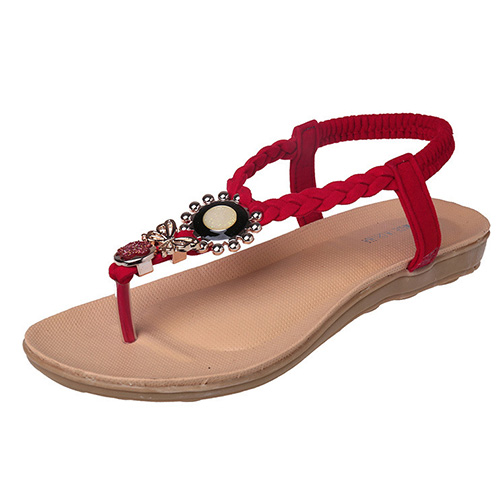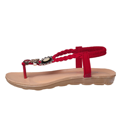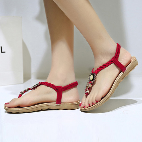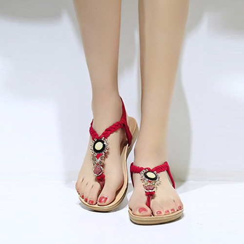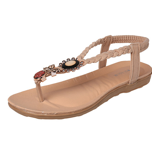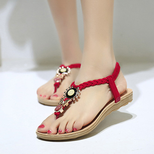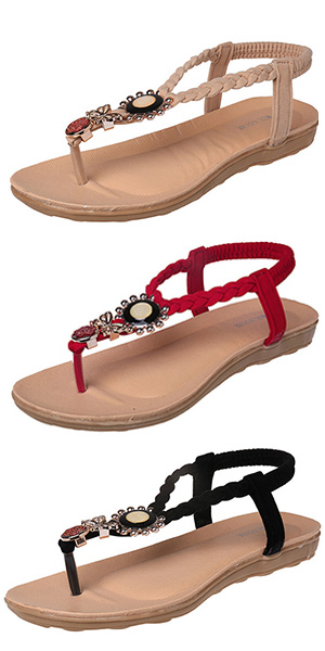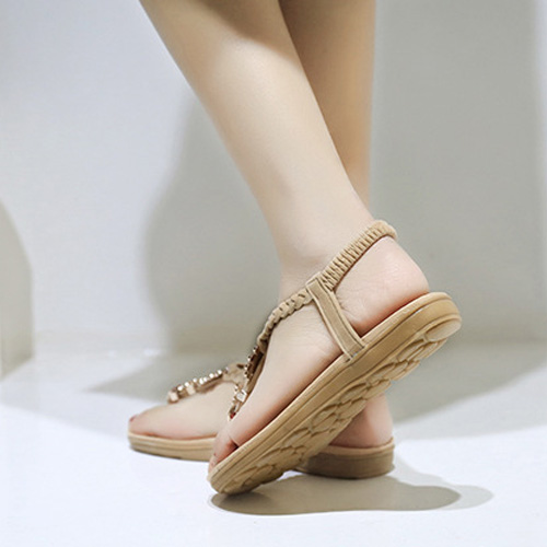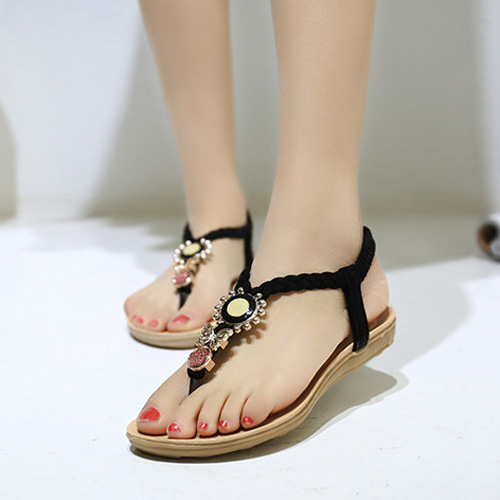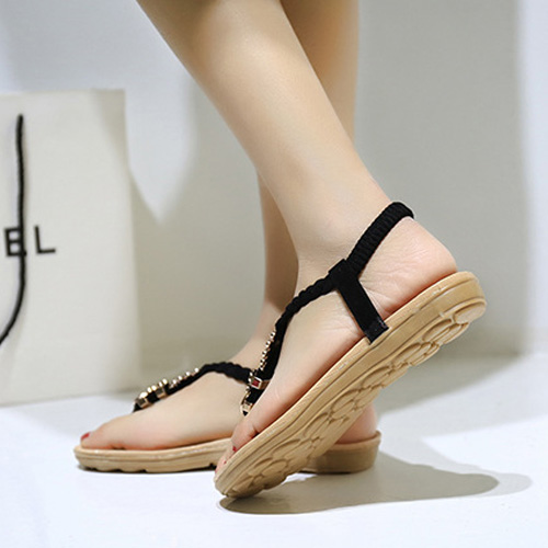 Featured with bohemian style,with beaded design,chic and stylish. Flat heel with anti-slip