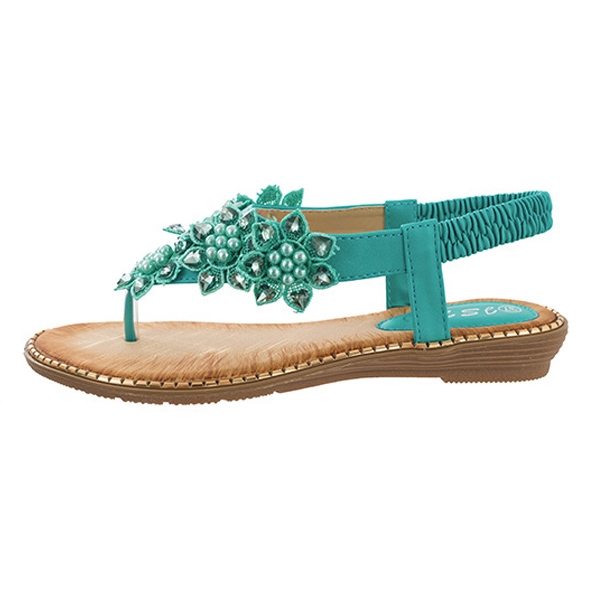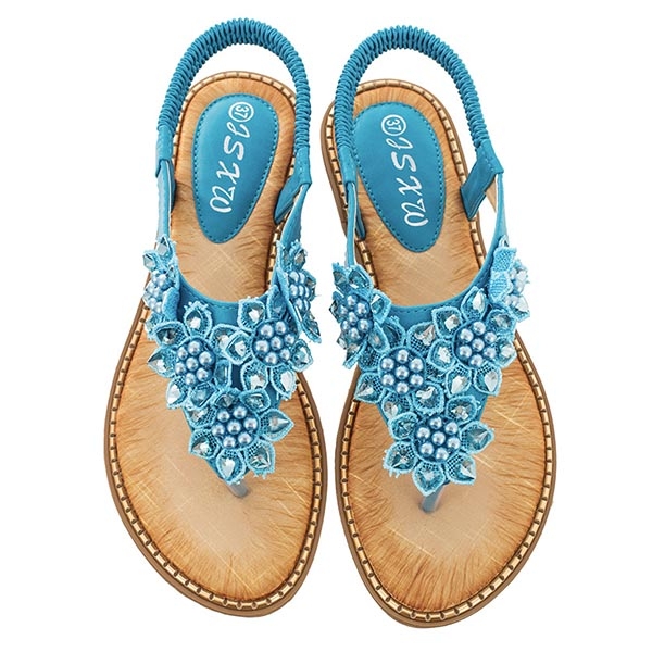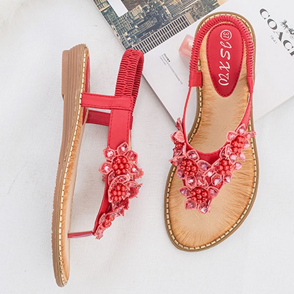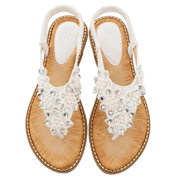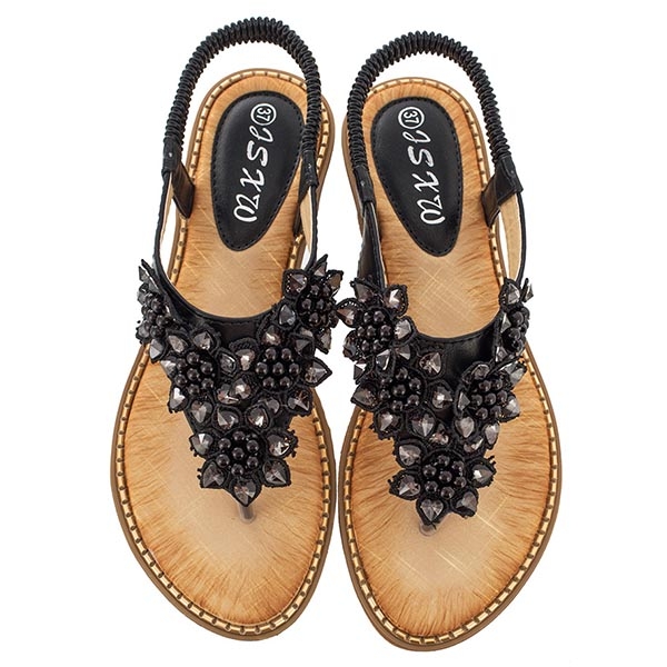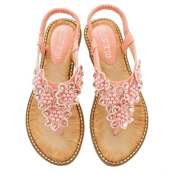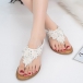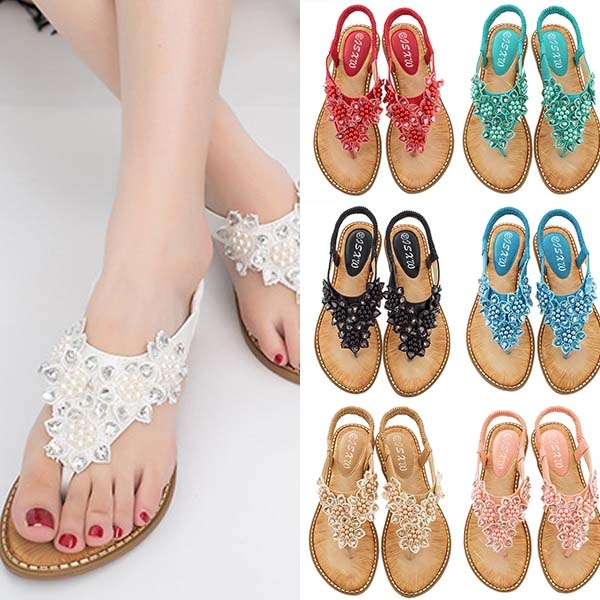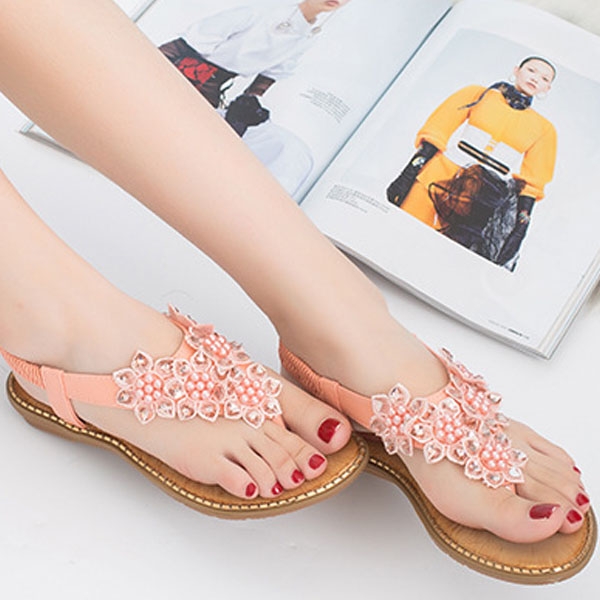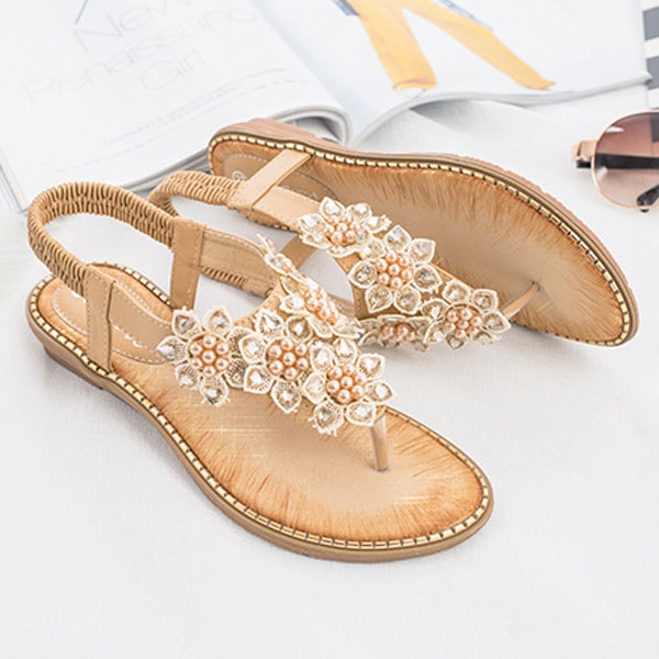 The beaded and lace spliced details make it look so attractive. Finished with flat heel and anti-slip