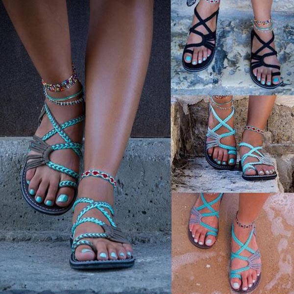 This bohemian style sandals is outfitted with flat heel and anti-slip sole,which can offer you a comfortable