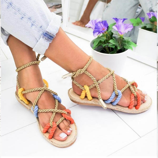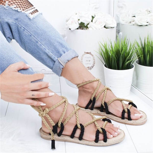 For these summer days,this pair of sandals would be your good choice. It is finished with flat heel and