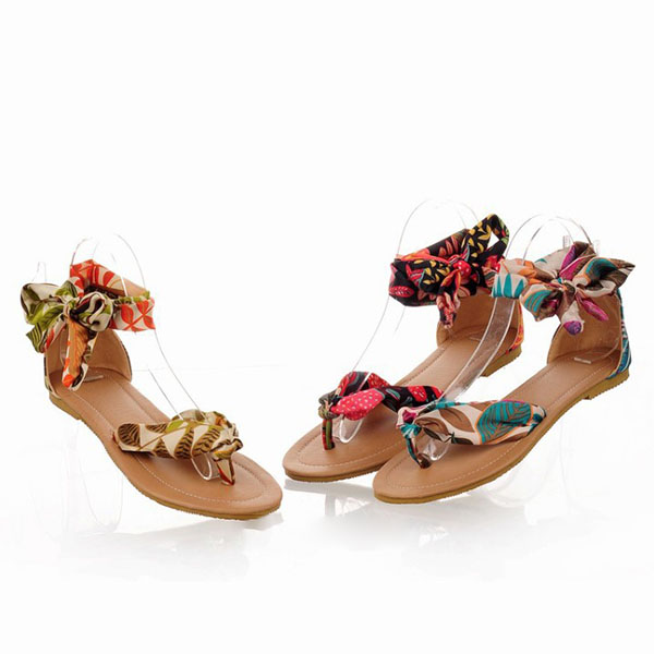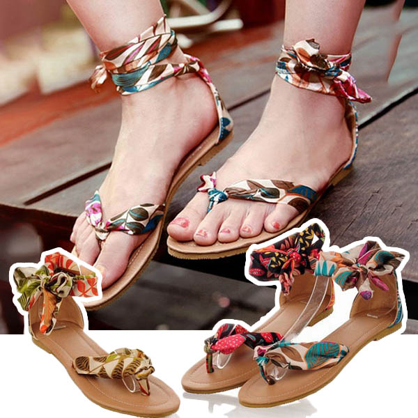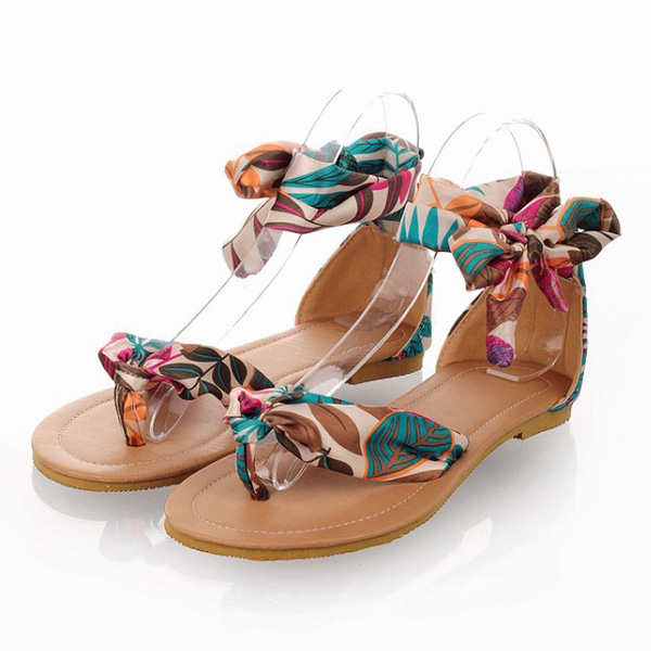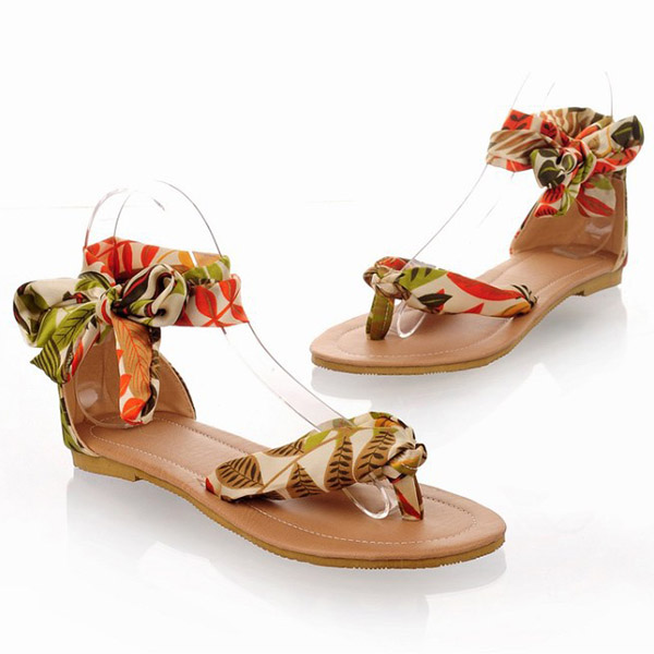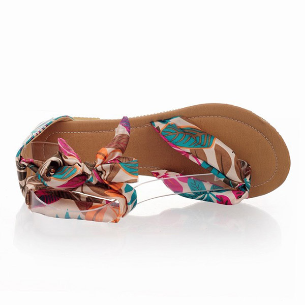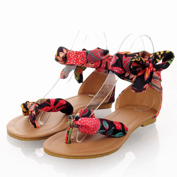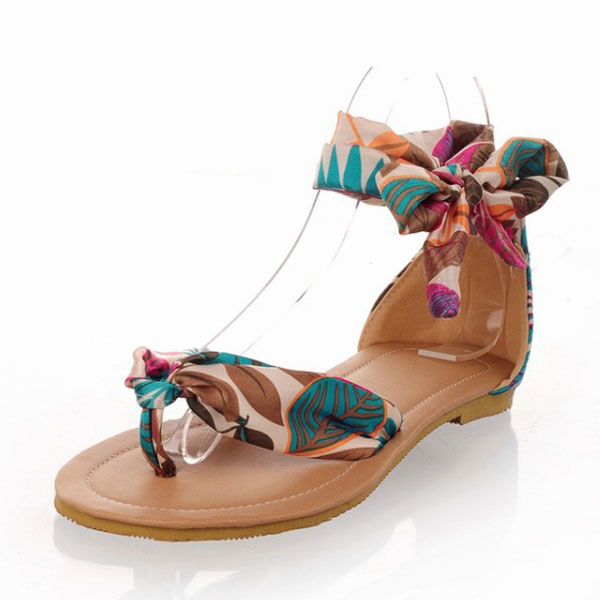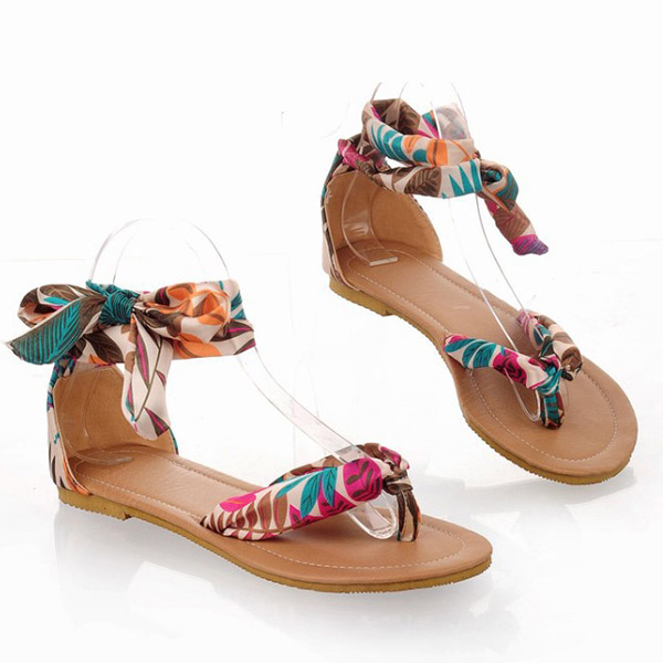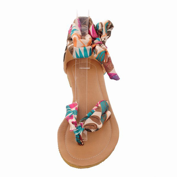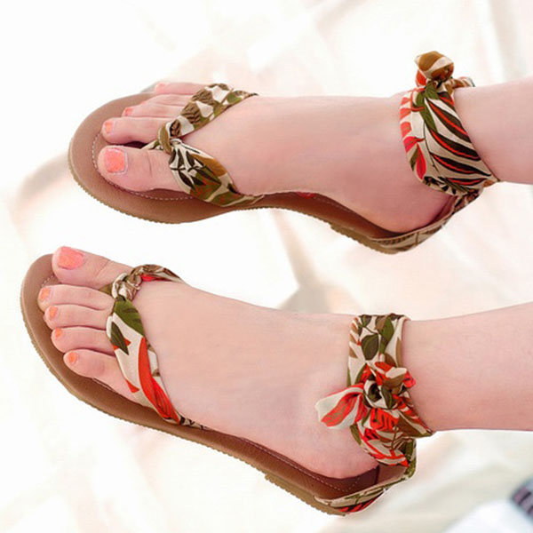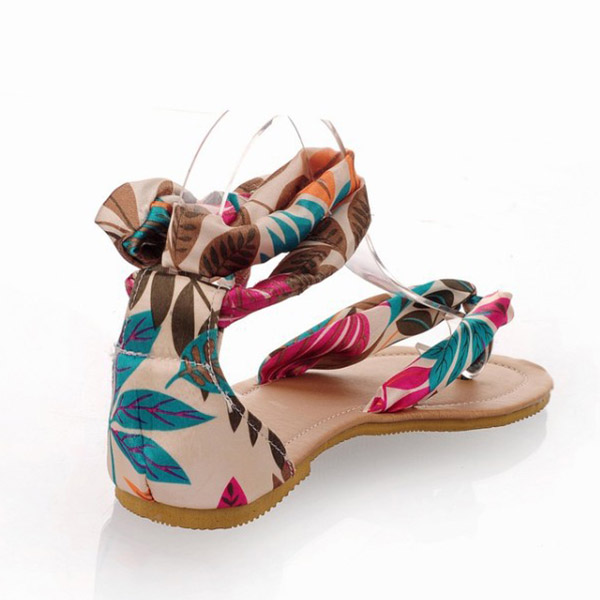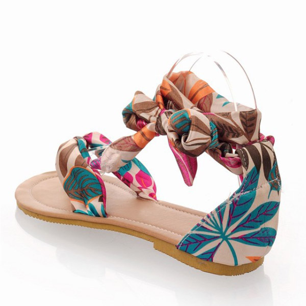 Bohemian Style Flat Heel Lace-up Printed Sandals
