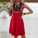 Bohemian Style Floral Embroidered Tassel Sleeveless Dress