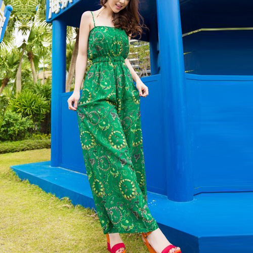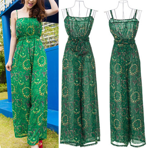 Bohemian Style Floral Print High Waist Chiffon Jumpsuits