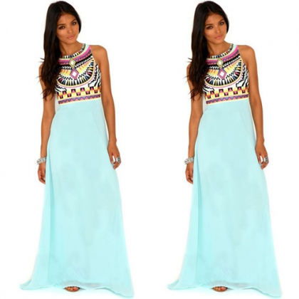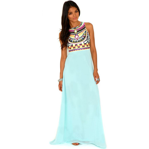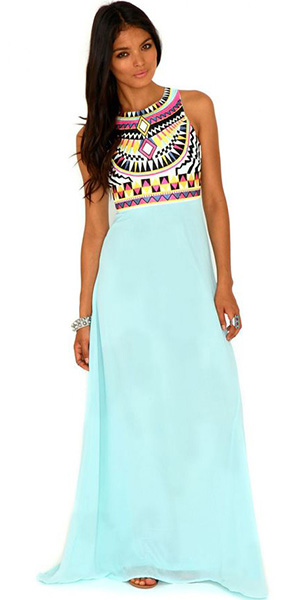 With a sleek silhouette that give you endless options for wear, this chiffon maxi dress is a flirty way to
