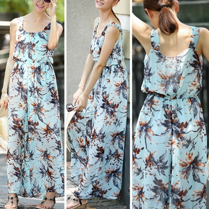 Everyone will envy you for having such a chic and stylish jumpsuit. Sling style,with sweet floral print pattern.