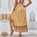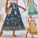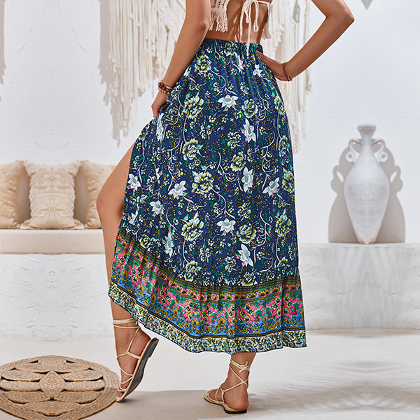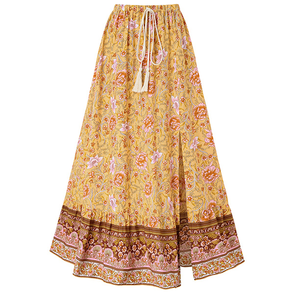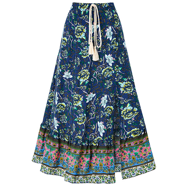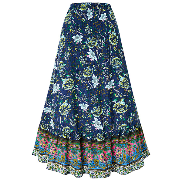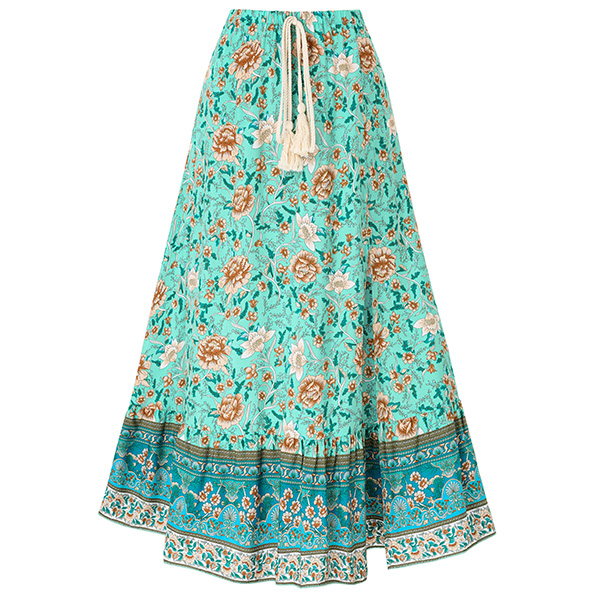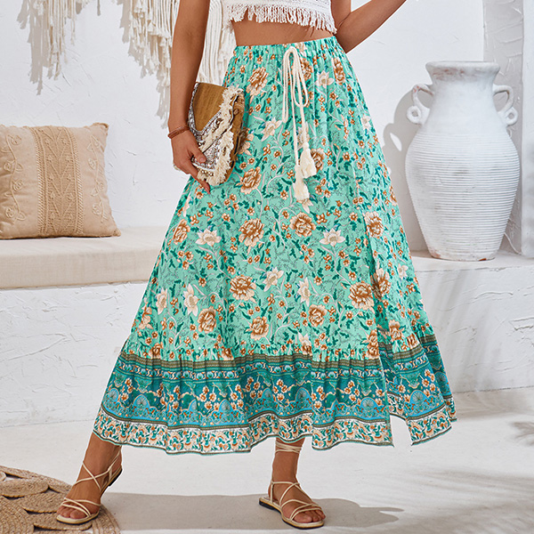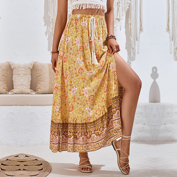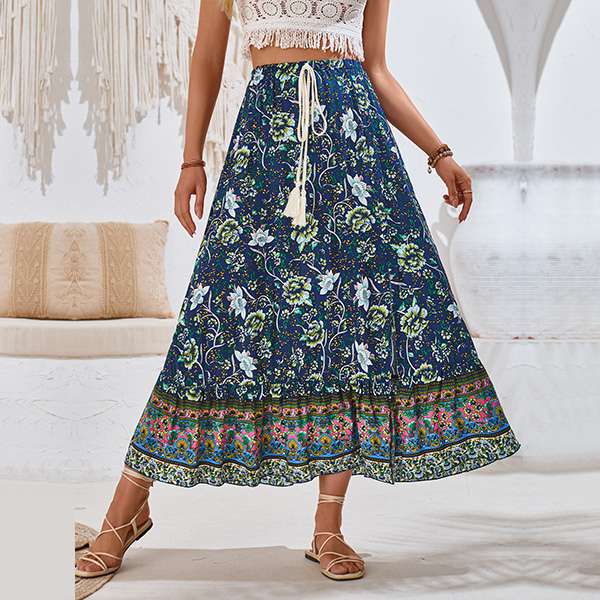 Bohemian Style Floral Printed Drawstring Maxi Skirt