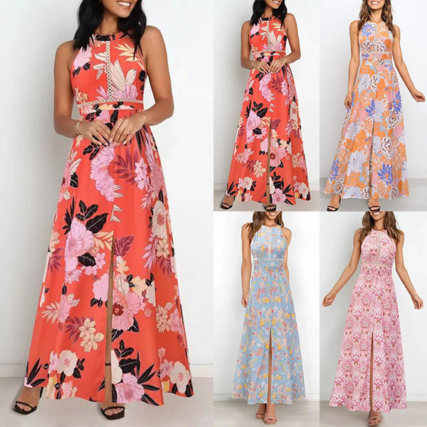 This beautiful maxi dress is perfect for any summer occasion! The bohemian style floral print is eye-catching and unique, while the halter criss-cross backless design is both stylish and sexy. The front slit up adds a touch of drama, multi-color is avaible.