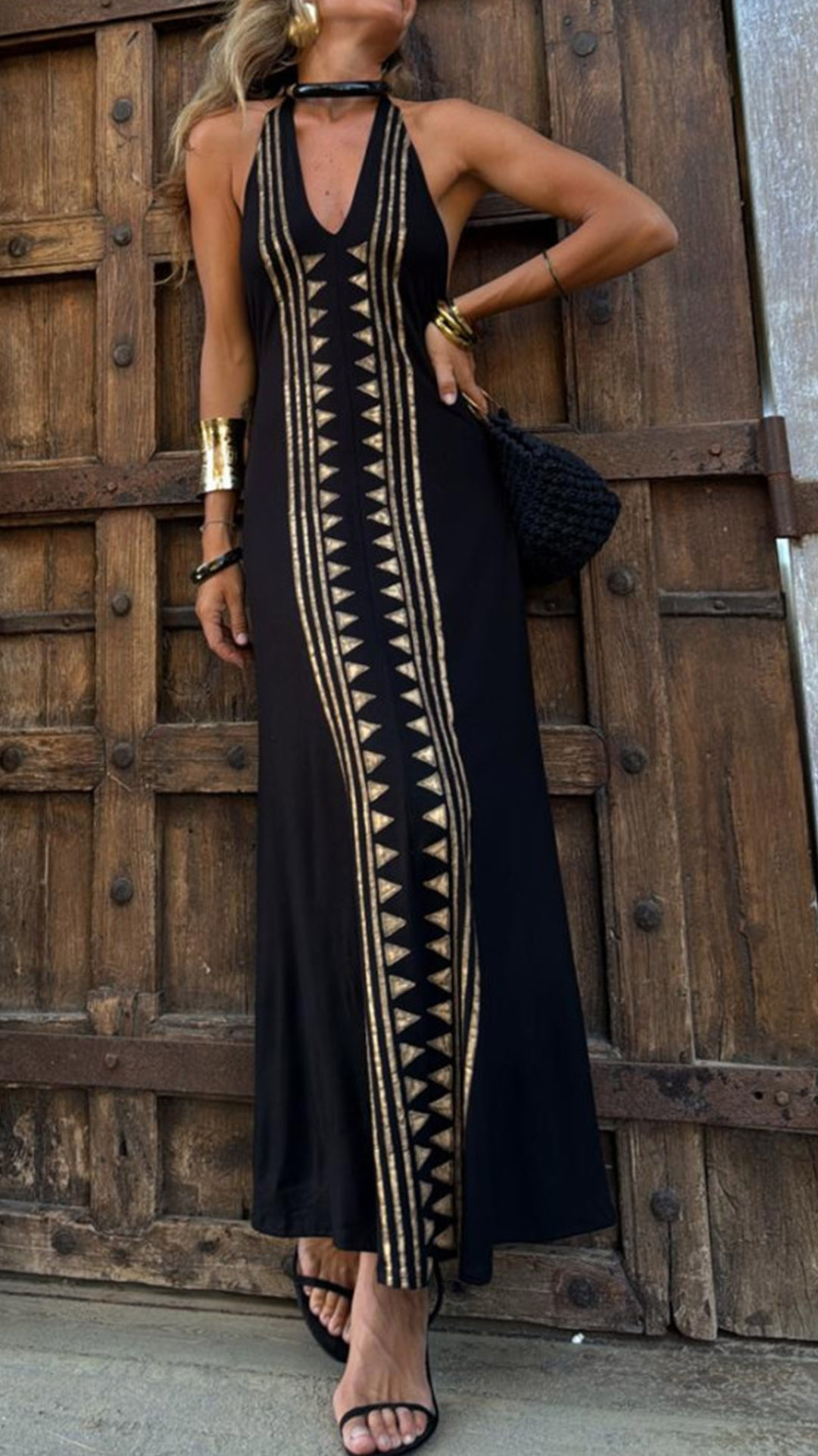 Robe longue en style bohème à imprimé floral dos nu et sans manches