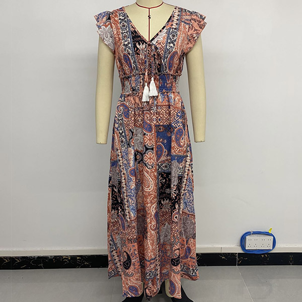 Look at this dress! It features vibrant floral print, a V-neckline with tassel design and cap sleeves, all coming together to create a dreamy, free-spirited aesthetic. Wanna have a try?