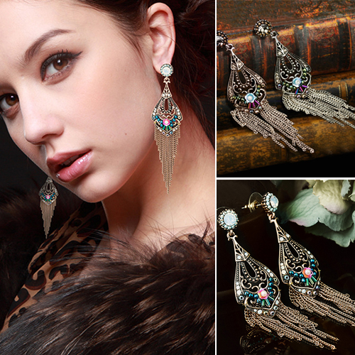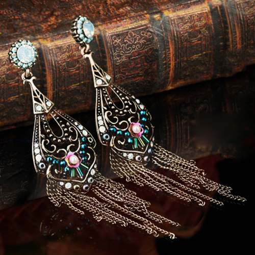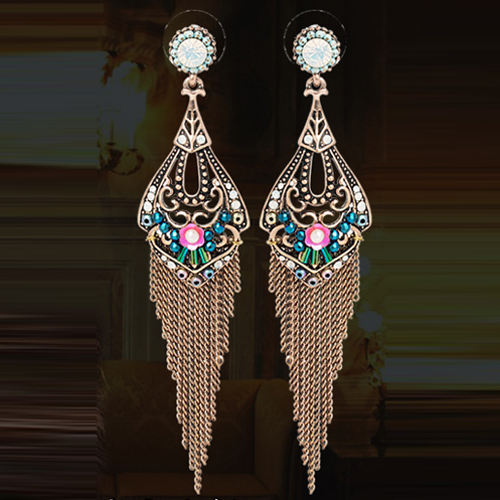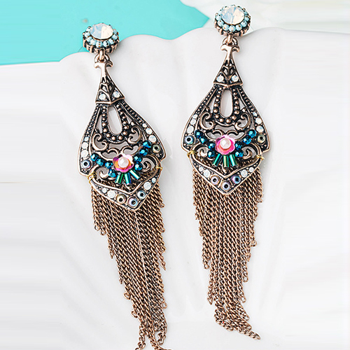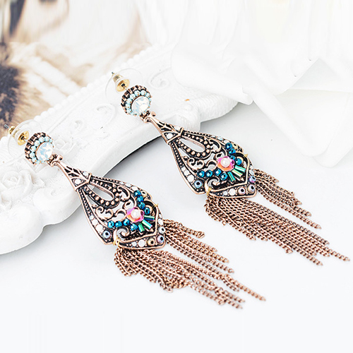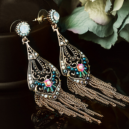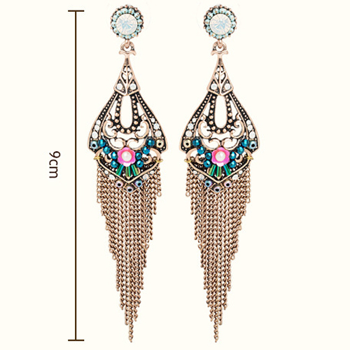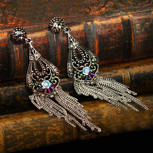 Bohemian Style Flower Hollow Out Tassel Pendant Earrings