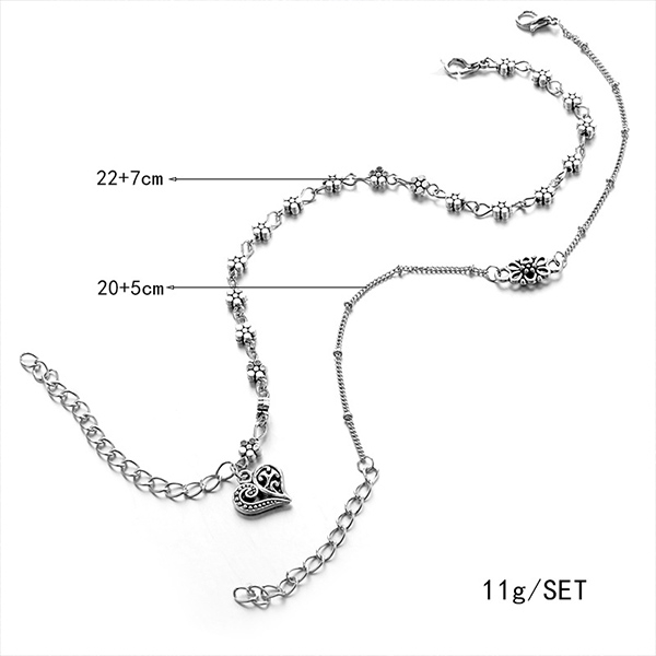Bohemian Style Flower Pendant Anklet Set 2 pcs/Set