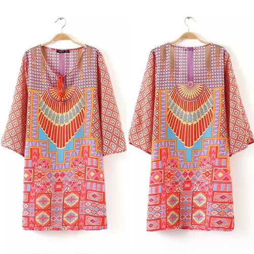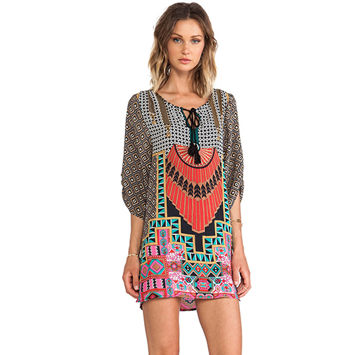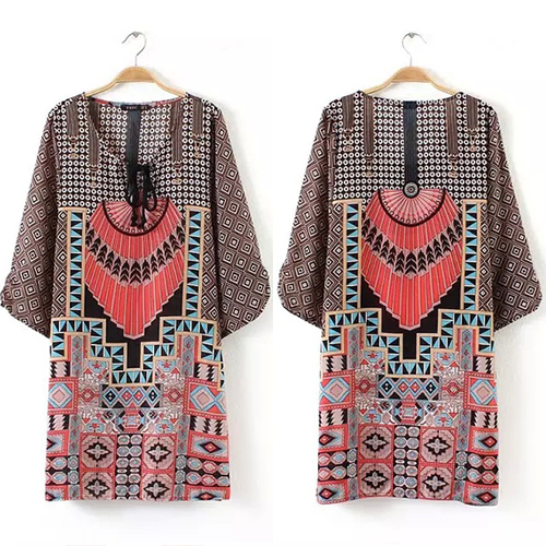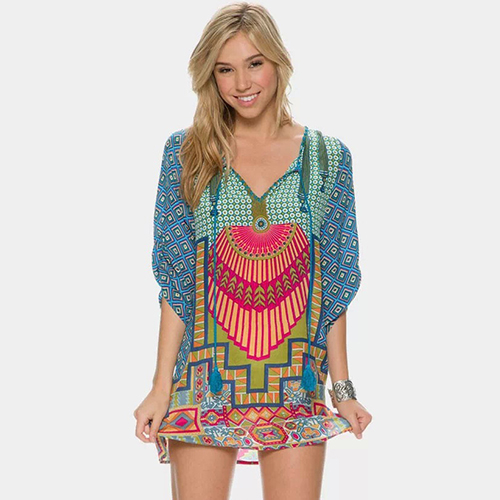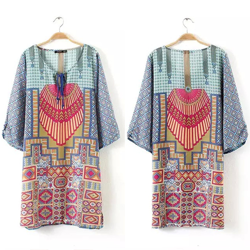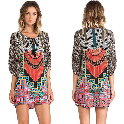 bohemian style floral print with a lace-up round neck for a comfortable wearing style. Pair it