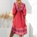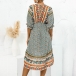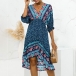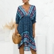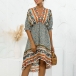 This bohemian-themed dress that combines of stylish and chic vibes can easily arouse your attention. Designed with eye-catching printed details,the v-shape backless and v-neck design can easily enhance your feminine appeal,while the half sleeve and high-low hem design will make this piece look more attractive. For your beach days or weekend trips,this dress can be your wise choice.