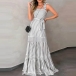 Like some bohemian style pieces? Then you can make your eyes focused on this dress. The high waist and maxi length design can showcase your slender figure,while the sling and backless design will offer you a more alluring look. On these sunny days,adding a sweet straw hat would make you look more beautiful and charming!