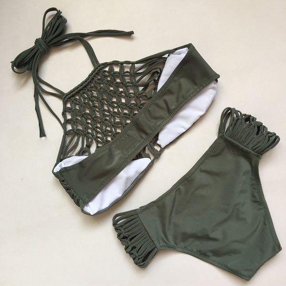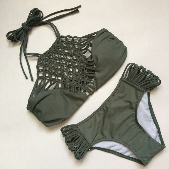 Lying on the beach with this bikini set to enjoy your relaxed summer time. Solid color style,with hollow out