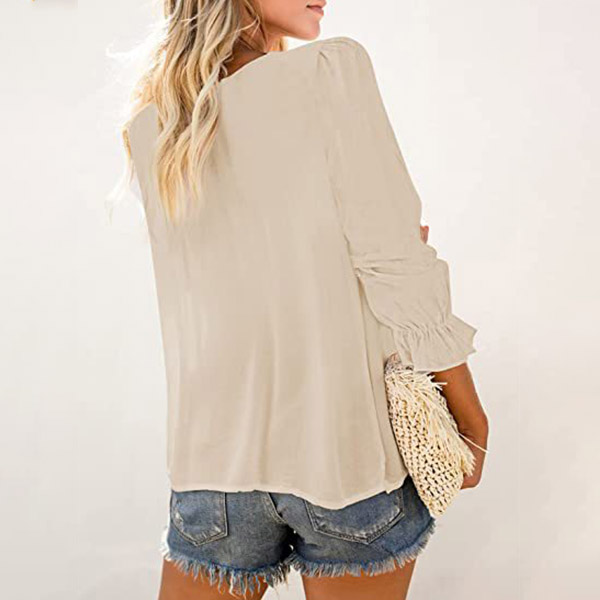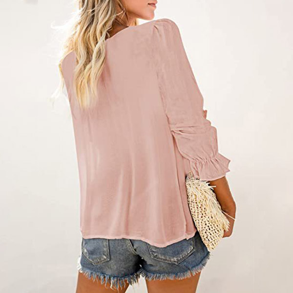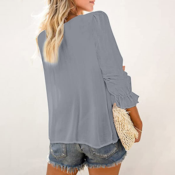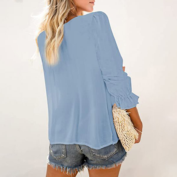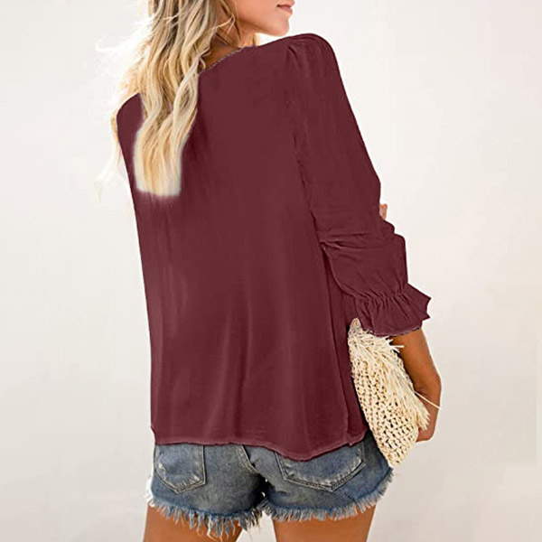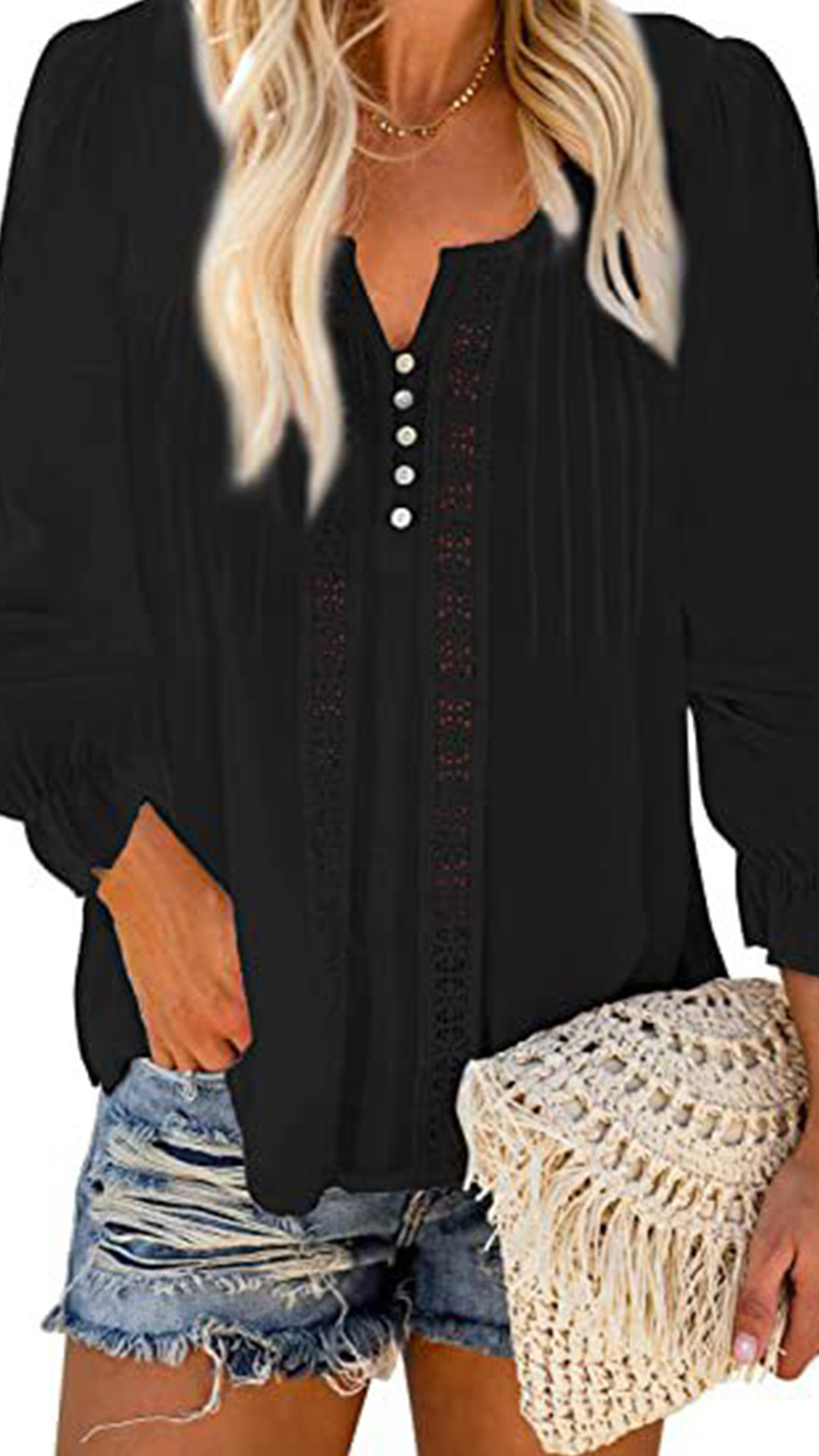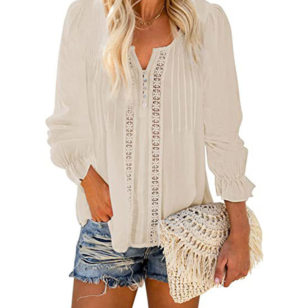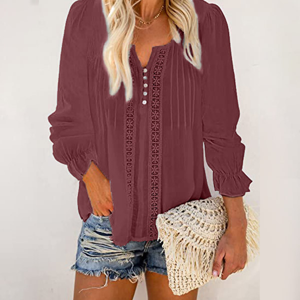 Solid color style,crafted from soft and breathable fabric,accompanied with long sleeve,v-neck and lace spliced details,this bohemian style top not only can give you a cool and comfortable day,but also can lend you a stylish and feminine style.An essential for you in these summer beach days.