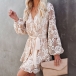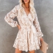 Bohemian Style Lantern Sleeve V-neck Ruffle Hem Dress