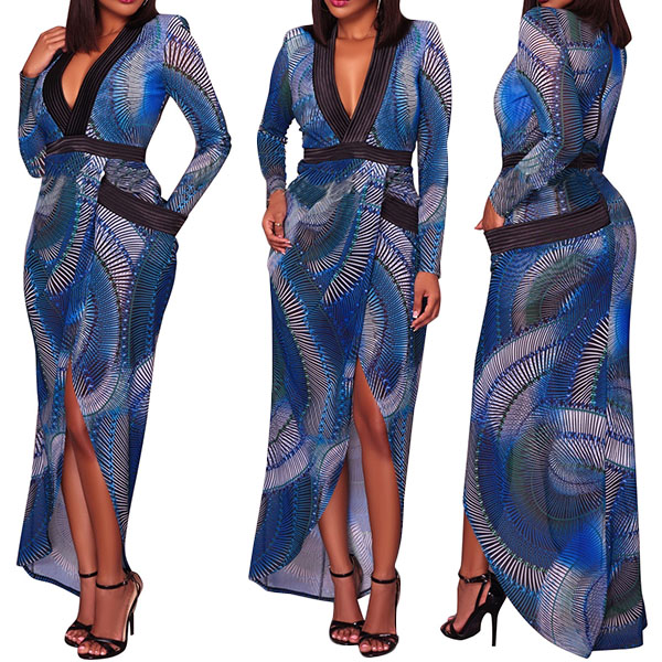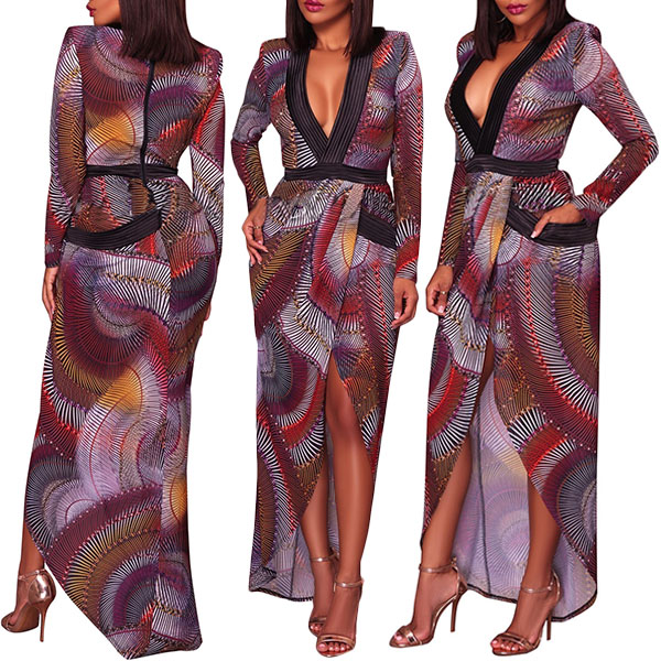 The deep v-neck and slit hem design will give you a sexy and charming style,while the chic printed design