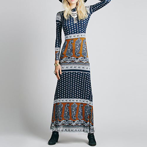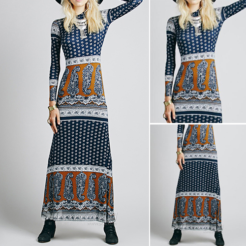 This dress features chic printed pattern,with long sleeve,mock neck and a maxi length,chic and stylish. Be