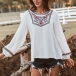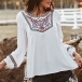 Bohemian Style Long Sleeve Round Neck Embroidered T-shirt