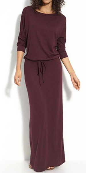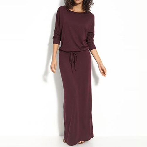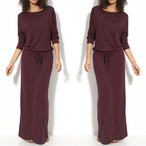 This bohemian style maxi dress features solid color style,outfitted with long sleeve,round neckline,
