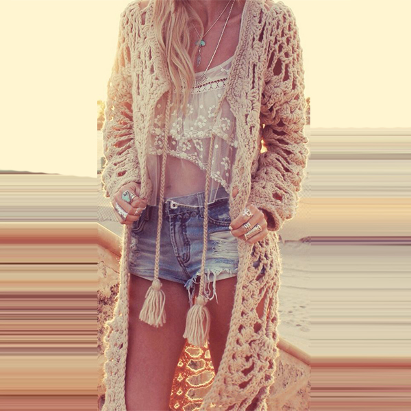 Your overall dress up would become more stylish and charming when you wear this knit cardigan. Hollow out knit style