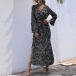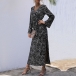 Bohemian Style Long Sleeve V-neck High Waist Printed Dress