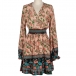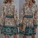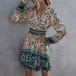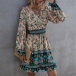 Bohemian Style Long Sleeve V-neck High Waist Printed Dress