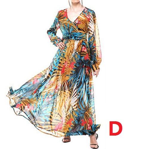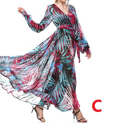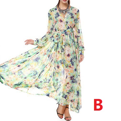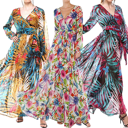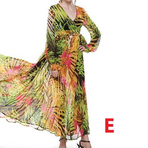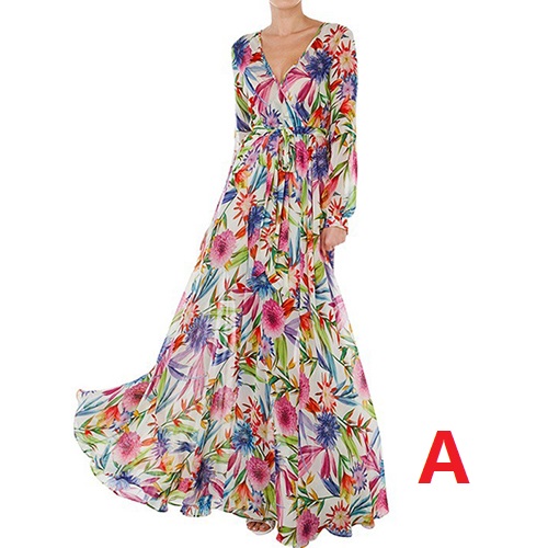 Boasts chic and eye-catching floral print,with long sleeve,v-neck,high waist and a maxi length,this dress is your