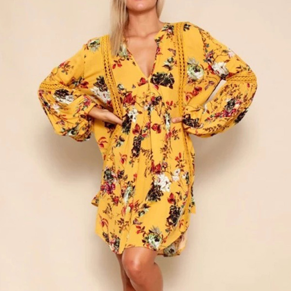 Add this bohemian-themed dress to your wardrobe ensemble to make it enrich. Boasts vibrant floral print,accompanied
