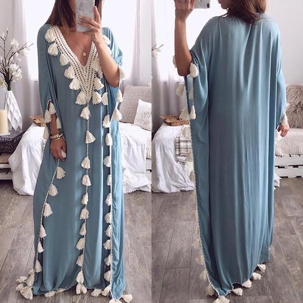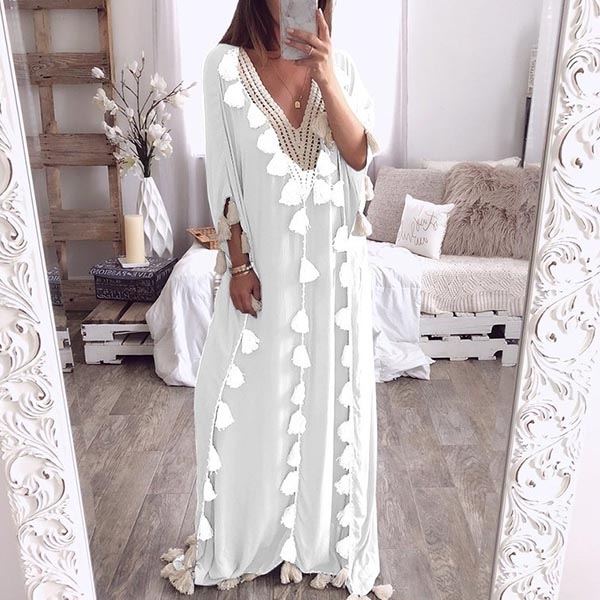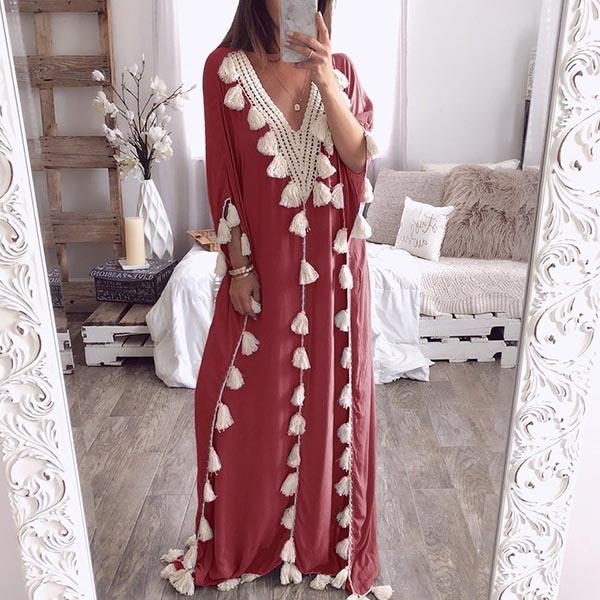 When walking on the beach with this bohemian-themed dress,you can easily be a pleasant sight! The tassel