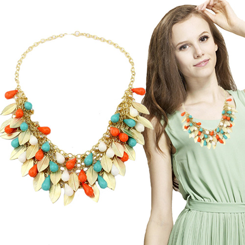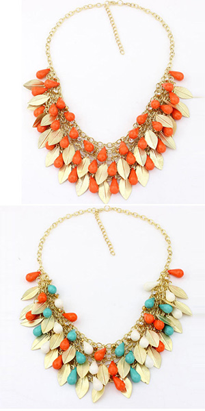 Multi-layer leaves tassels design makes this necklace so sparkle and charming.