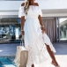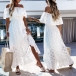For a charming and beautiful beach look,you can just have a try this lace dress. The off-shoulder boat neck and irregular hem design make this piece look so alluring and distinctive,while the high waist design will showcase your slender figure. On these sunny days,you can match with a sweet straw hat for a more perfect dress up!