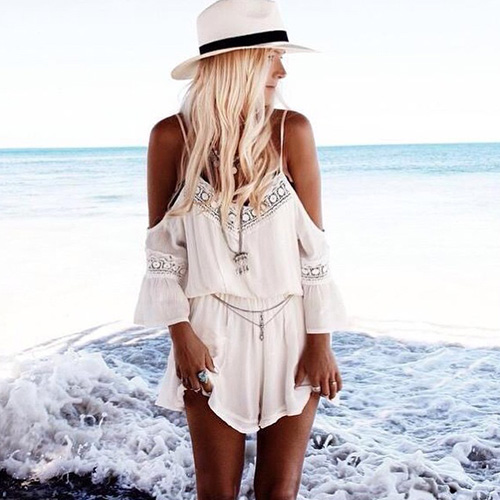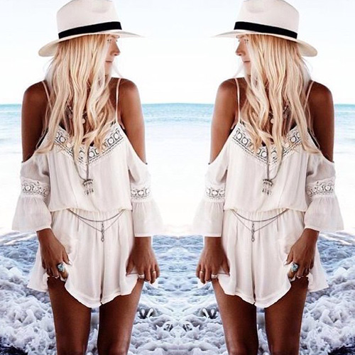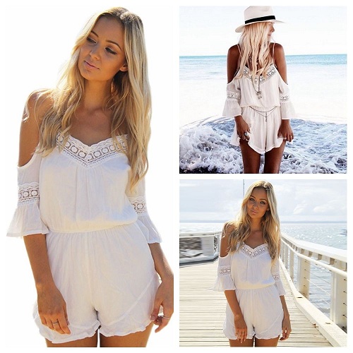 This jumpsuit features sling style,with off-shoulder design,makes it look sexy and feminine.