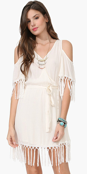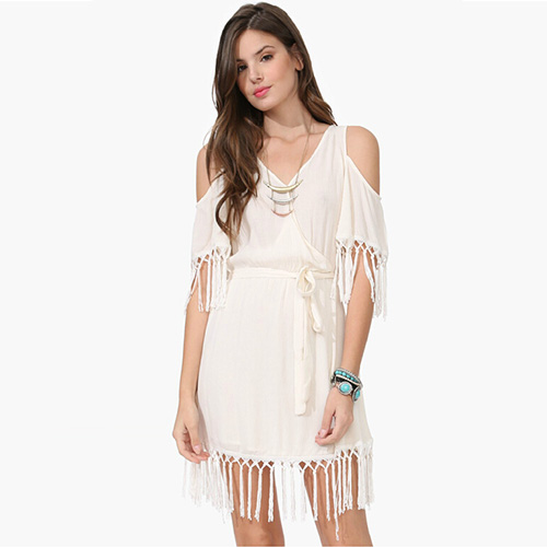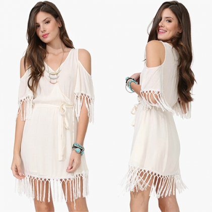 off-shoulder design,adding some sexy elements. Tassels design makes this dress more chic and attractive.