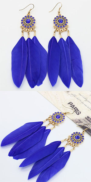 Become the focus of the party in these pretty earrings. Feather earrings,decorated with