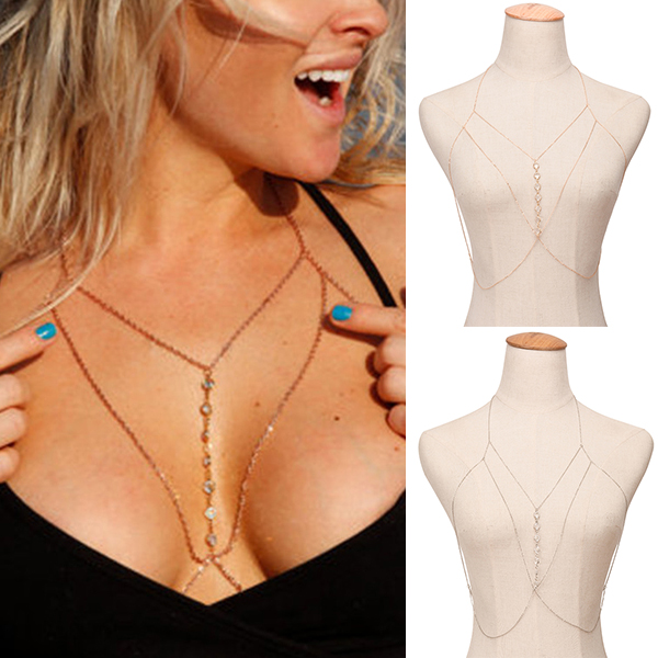 Bohemian Style Rhinestone Inlaid Multilayer Body Chain