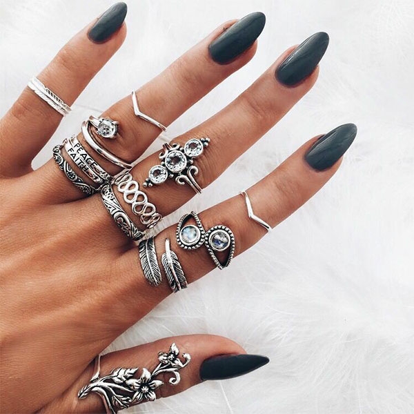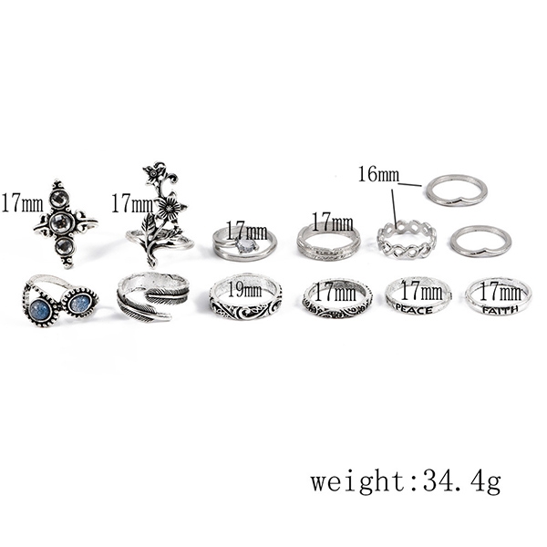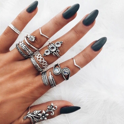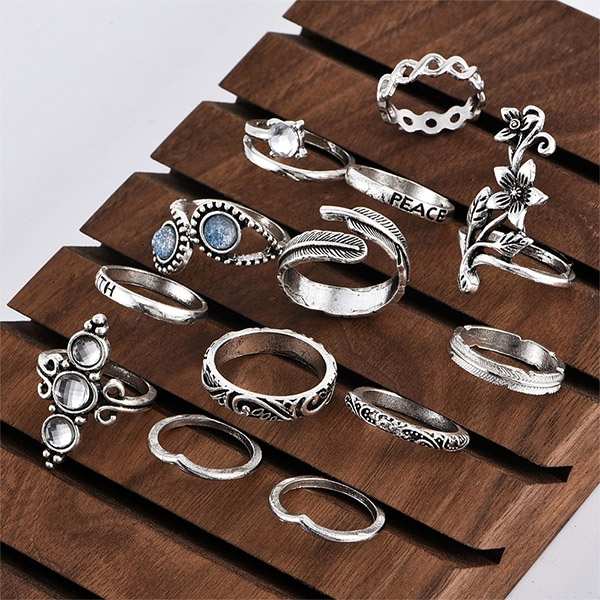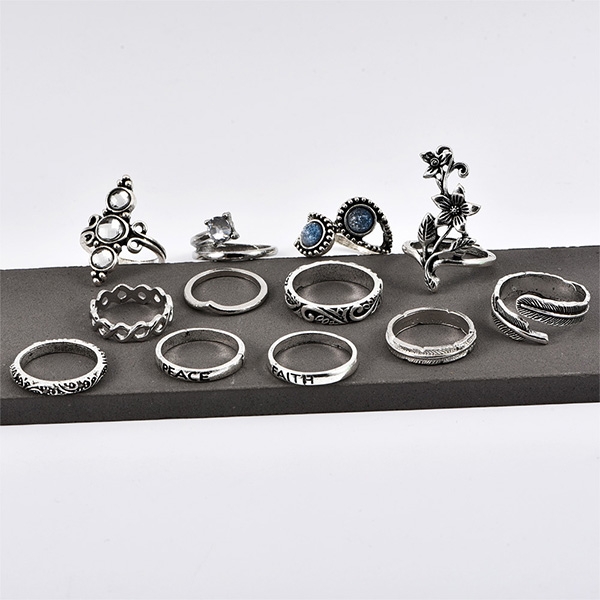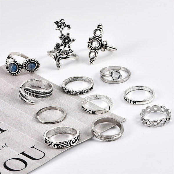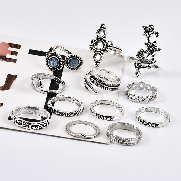 This ring set comes with a classic yet stylish silver tone,including 13 pieces different rings,