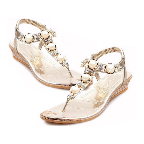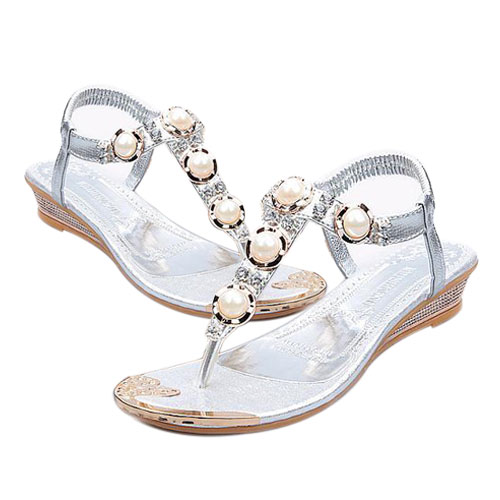 Featuring rhinestone and pearls for decoration,dazzling and luxurious. Comfortable low wedge heel and anti-slip rubber sole makes you walk steadily and comfortable. A good partner for you in this summer.