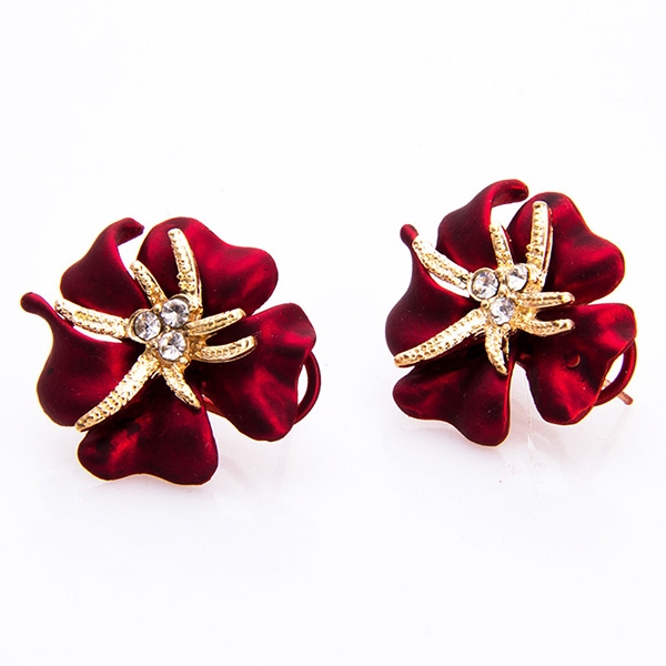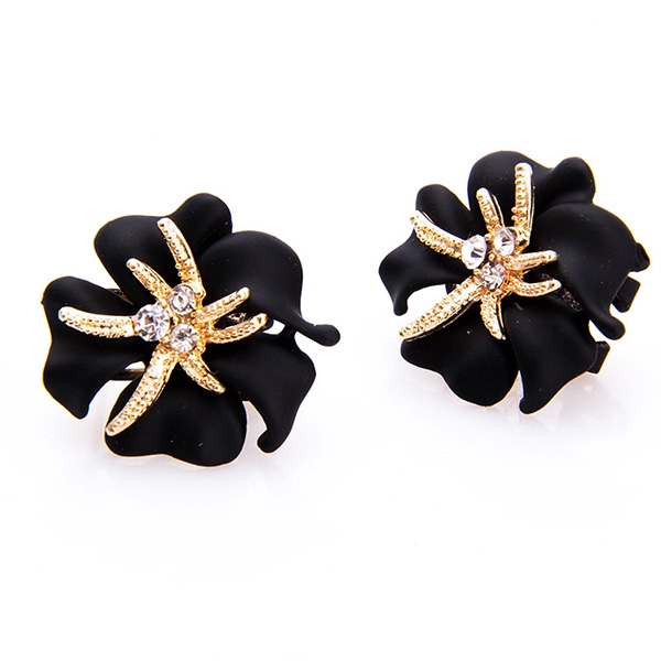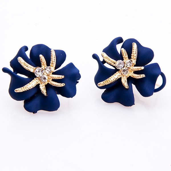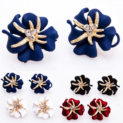 Bohemian Style Rhinestone Starfish Flower Shaped Stud Earrings