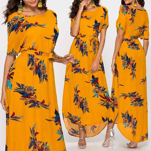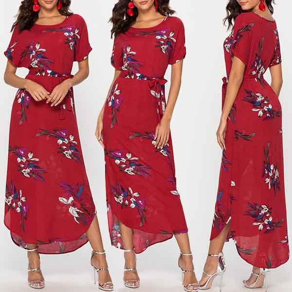 eye-catching floral print,finished with short sleeve,round neck and high waist design,this dress can give