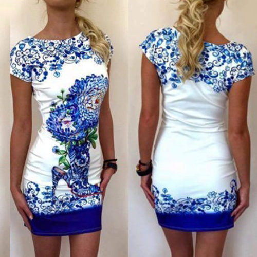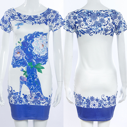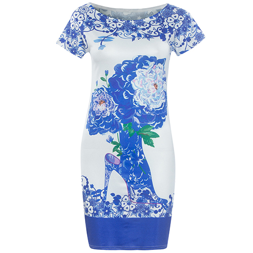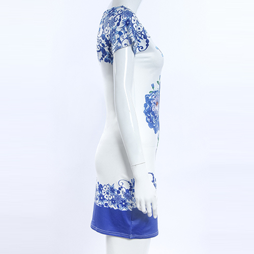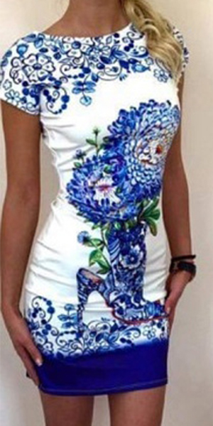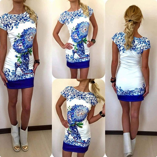 Features chic and eye-catching printed pattern,with short sleeve,round neck and a fit