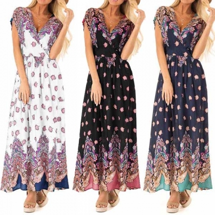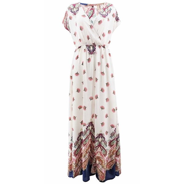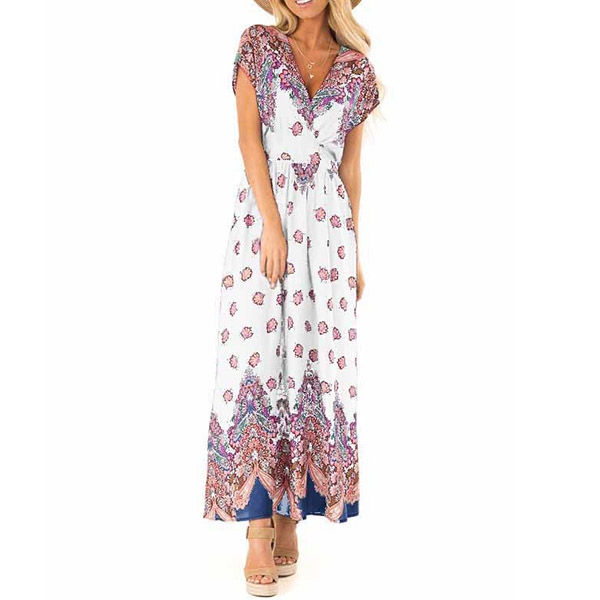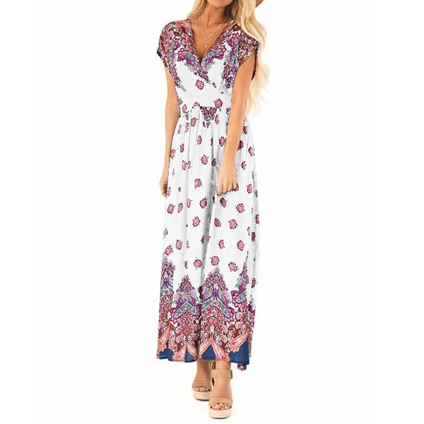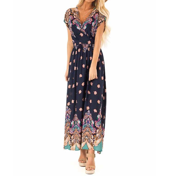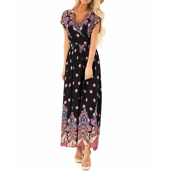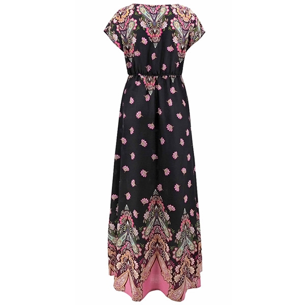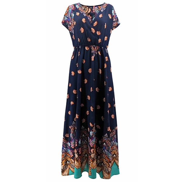 printed details,finished with short sleeve,v-neck and high waist design,this dress makes it easy for