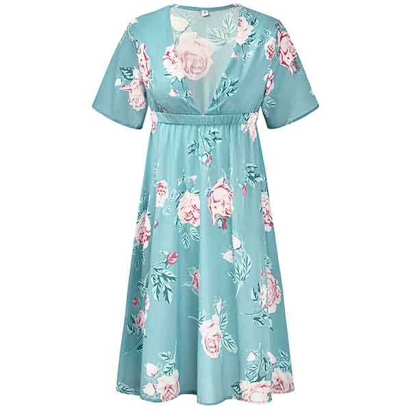finished with short sleeve,v-neck and high waist design,this dress knows how to express your unique beauty!