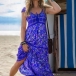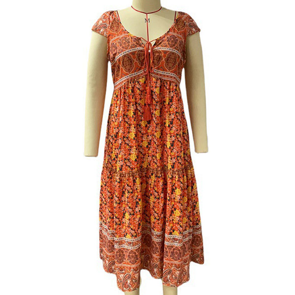 Bohemian Style Short Sleeve V-neck High Waist Printed Maxi Dress